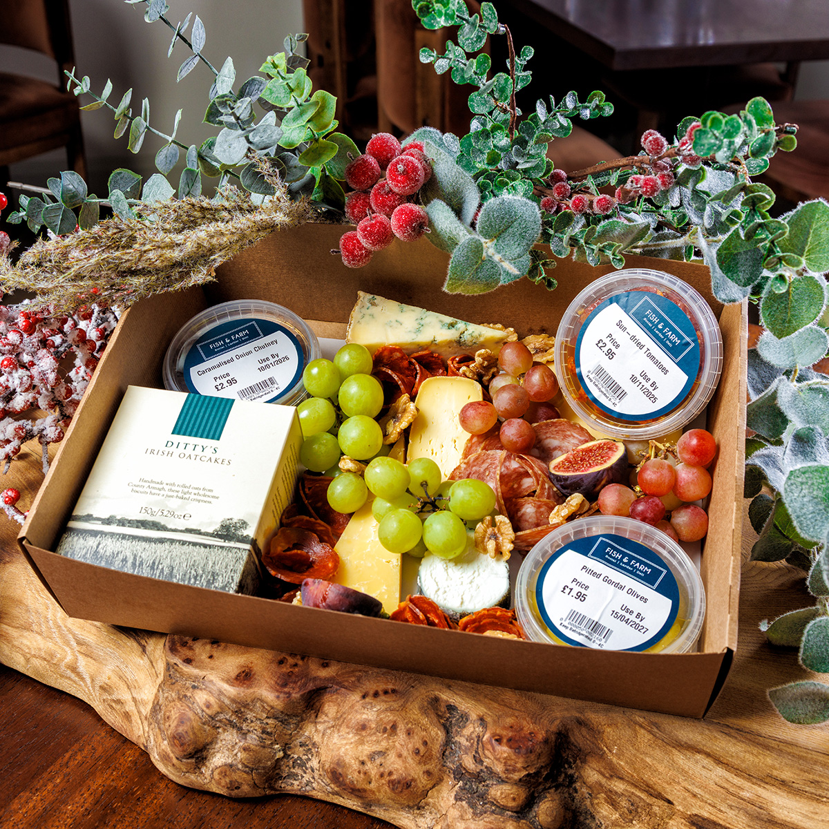 Each box will be accompanied with Charcuterie, Sundried Tomatoes, Grapes, Nuts, Chutney, Olives & Crackers