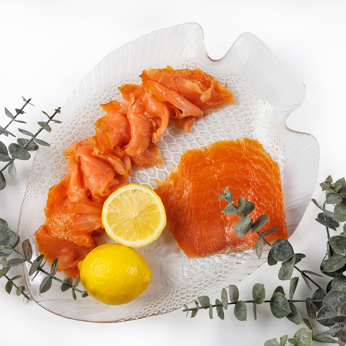 Enjoy the exceptional flavours of our oaked smoked Scottish farmed salmon, which has been sliced for your convenience. Enhance your dining experience with this ready to eat delicacy, boasting a rich, smoky character that captures the essence of local waters.